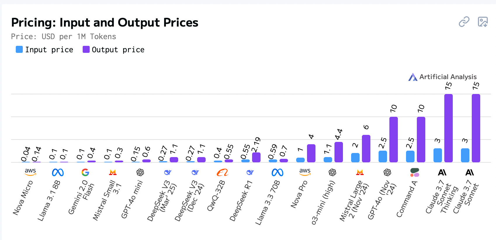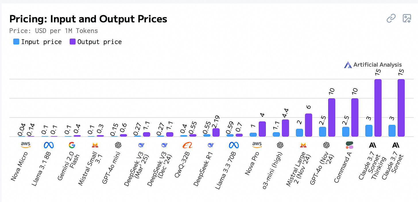 Claude 3.7 Sonnet: $3 / million tokens for input, $15 / million tokens for output
