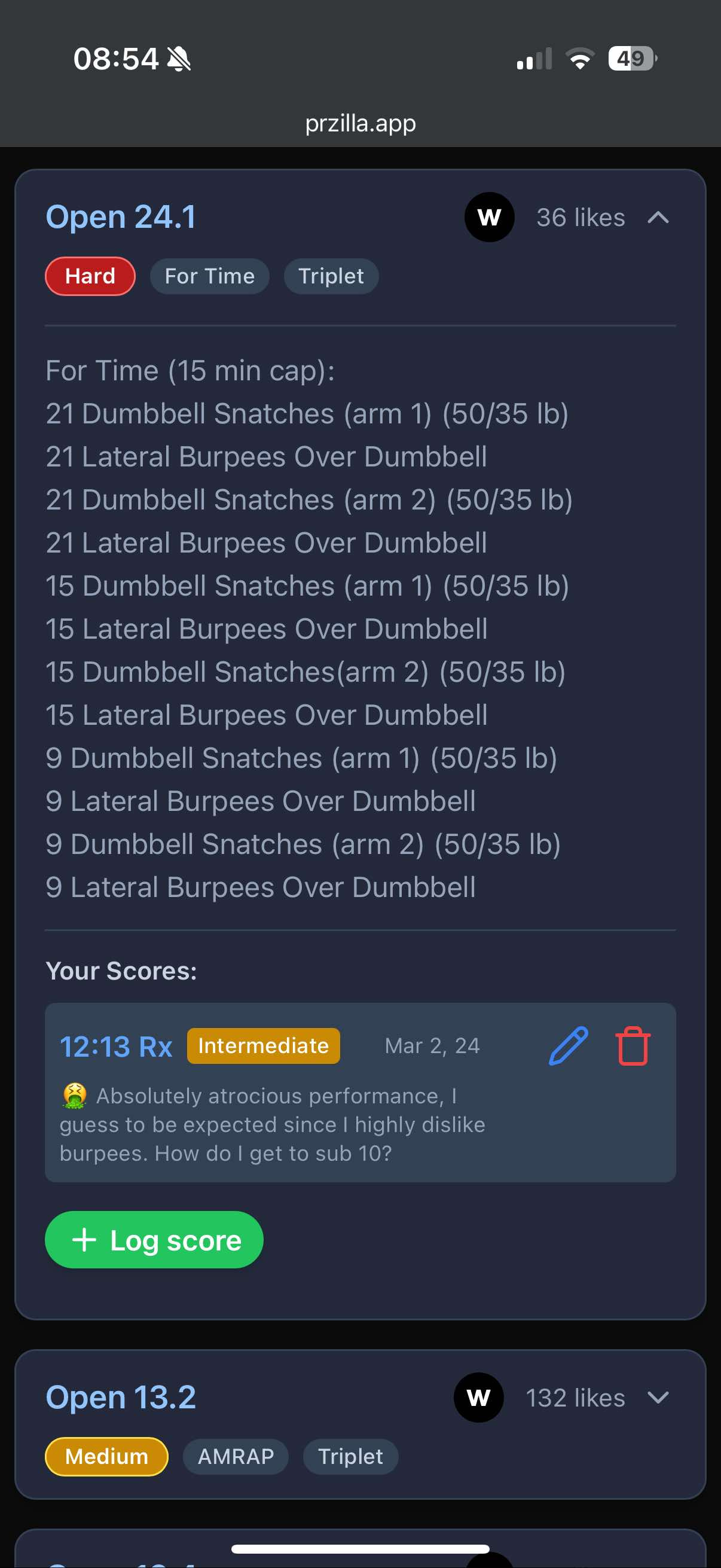 This week also marks a month of working with Cline and my app is now ready! I’ve done some heavy refactoring — switched to BetterAuth which involved database changes. This wasn’t doable with vibe coding but Cline still wrote all of the code with heavy assistance. You can now edit/delete/log scores and the UI correctly changes for time vs. rep vs. load -based ones. The app has light and dark modes. It works on mobile by presenting a very different list-based view: