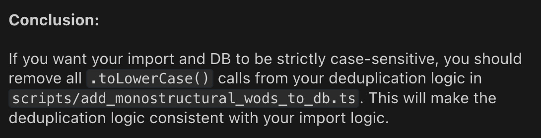 So what did 4.1 fail with? It messed up a fairly simple reorganization, moving files from src/app/_components to src/app/(<route>)/components (Gemini handled it much better — it only had a couple broken tests after reorg vs. a dozen after 4.1). GPT4.1 removed a bunch of content from recentChanges.md, replacing it with <!-- ...rest of file unchanged... -->. It would often tell me what I should do instead of doing it itself or asking me to give permission to do it. And it would make basic logical mistakes like creating a map of keys to match, then lowercasing them during match, thereby causing the match to always fail.