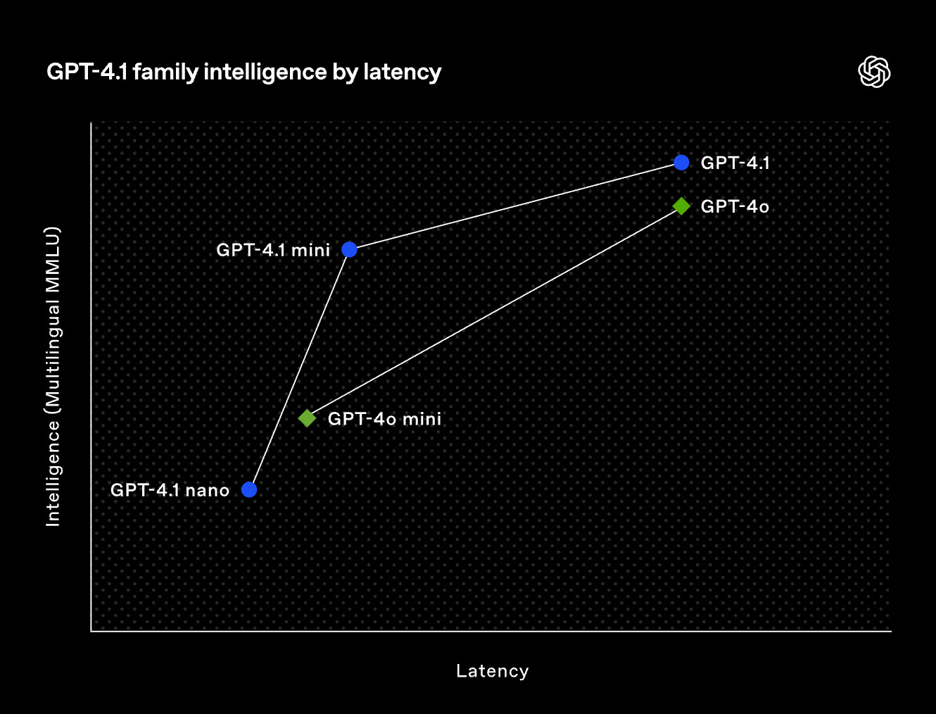 I quickly moved on to the “full” 4.1 and was immediately impressed by its thinking, snappiness, and general ability to get complex things done correctly. Speaking of snappy, we’re finally entering an era of talking about latency in addition to intelligence! I love that OpenAI released 4.1 with this graph: