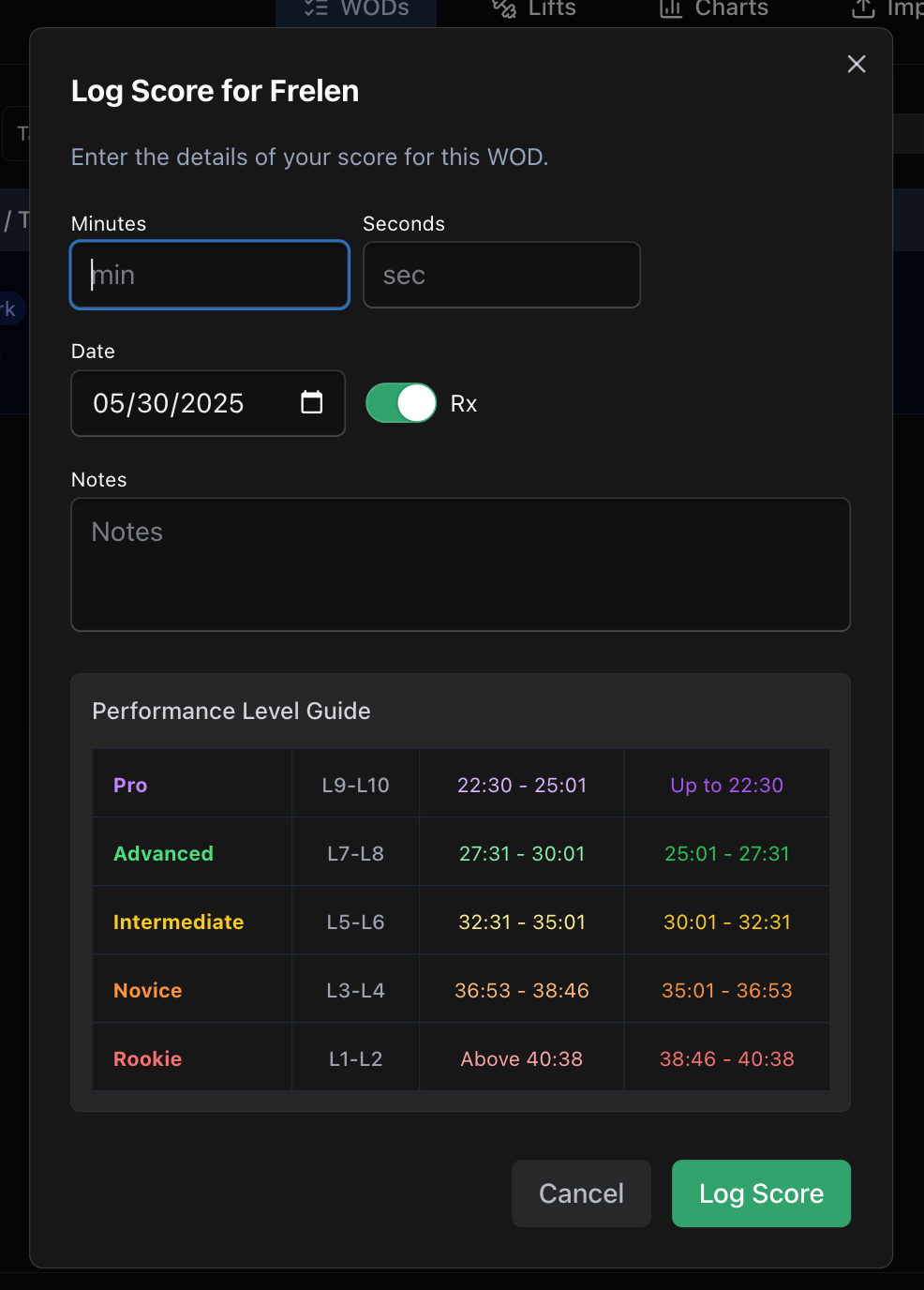 In the future, I’m planning to add an option to input any custom WOD and get an estimate of its difficulty and performance levels.